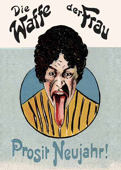 Bildatlas01 ← Vorherige Nächste → Frauenfeindlicher Humor, Chromolithographie, Postkarte Deutschland um 1900, Coll. Mila Palm / Teil aus: Bildatlas der Unterdrückung 1890-1930