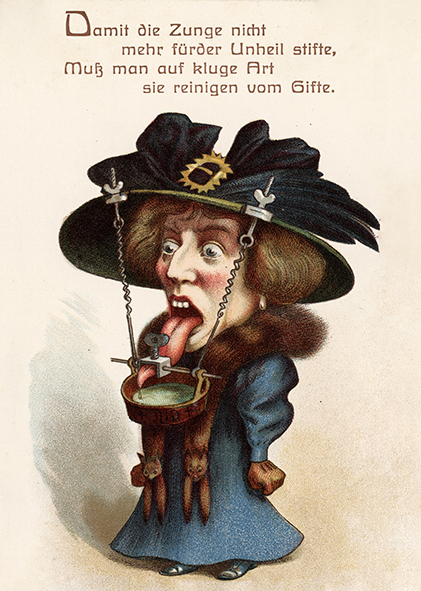 Bildatlas2 ← Vorherige Nächste → Frauenfeindlicher Humor, Chromolithographie, Postkarte Deutschland um 1900, Coll. Mila Palm / Teil aus: Bildatlas der Unterdrückung 1890-1930