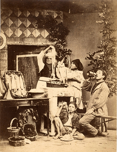 Spagetti-Esser, Albuminabzug Italien um 1870, 15 x 12 cm