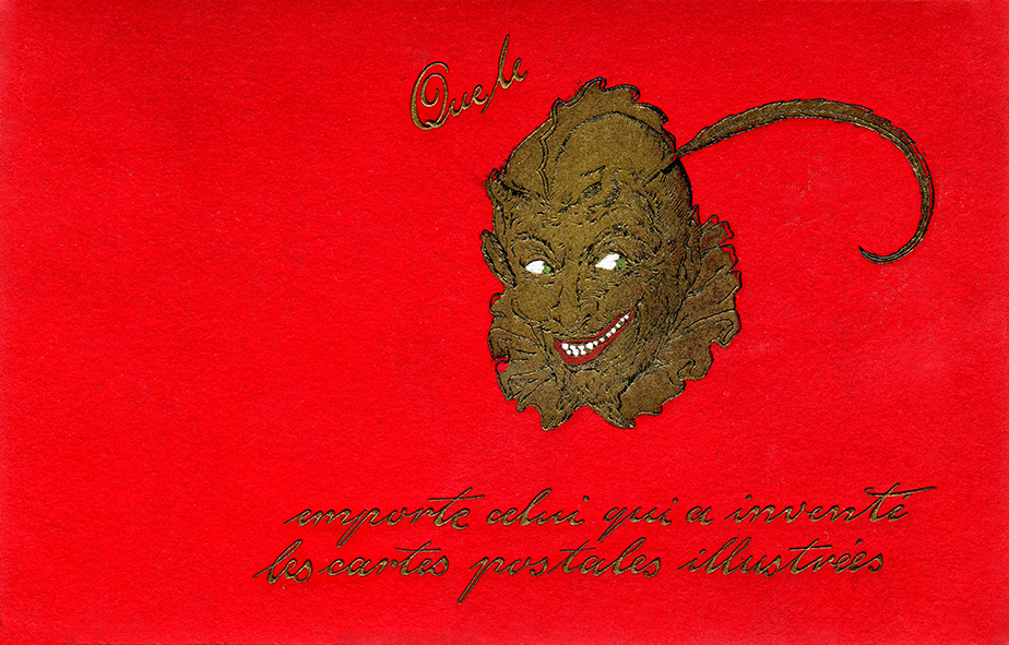 Krampus II ← Vorherige Nächste → Der Teufel soll den holen der die Postkarten erfunden hat., Stahlstich um 1900, Coll. Mila Palm