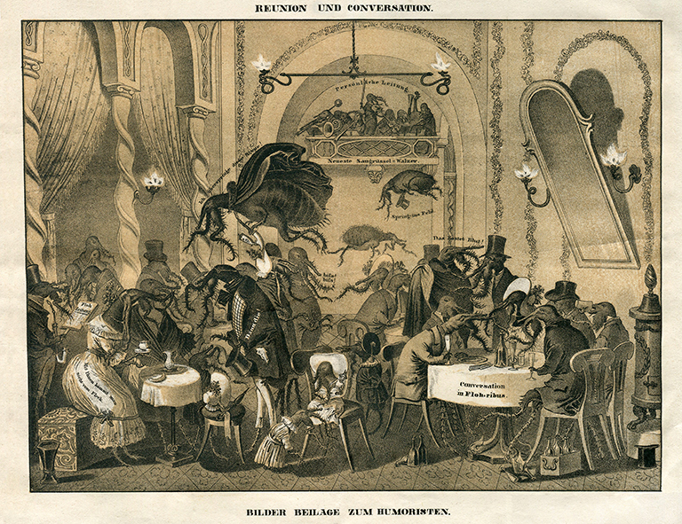 Flöhe311 Kopie ← Vorherige Nächste → Conversation und Reunion, Wien um 1845, 35 x 28 cm © Milaneum 2017